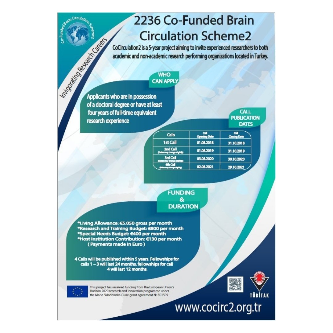TÜBİTAK ve Avrupa Komisyonu ortaklığında yürütülen “2236 Uluslararası Deneyimli Araştırmacı Dolaşım Programı”nın ikinci çağrısı açılmıştır. Bu bağlamdaki afiş ve duyuru ektedir.
